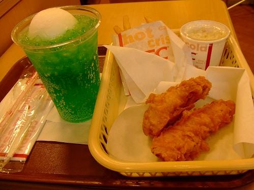 ติดใจเคเอฟซีที่นู้น บางคนอาจจะบอกว่าบ้านเราก็มี แต่เคเอฟซีรสชาติที่นี่ไม่เหมือนกับที่ไทยนะ ที่ระชอบมากๆคือเมลอนโซดาโฟลด์นี่แล แล้วไก่ไร้กระดูกชิ้นโตจริงๆ ที่ถูกใจอีกอย่างคือ ถ้ากินในร้านใส่ไก่ในตะกร้าให้ด้วยหรูๆๆจัดเป็นระเบียบเชียว (ตะกร้ากินเสร็จแล้วต้องคืน) เอากลับบ้านไม่ได้ถ่ายไว้เป็นที่ระลึก