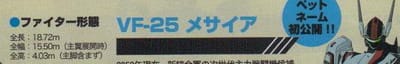 เผยชื่อเพ็ทเนมของVF-25แล้วค่ะ MESSIAH เมสไซอา 4 ตัวอักษรญี่ปุ่นอย่างที่เวบทางการใบ้ไว้จริงๆ